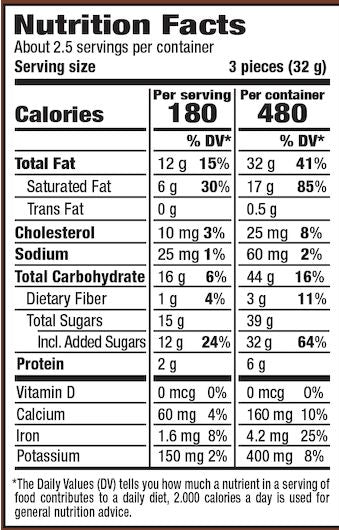Ingredients: Sugar, Milk Powder, Cocoa Butter, Cocoa Mass, Chopped Caramelized Hazelnuts 10% (Hazelnuts 7,9% On The Total Product, Sugar, Dextrose, Honey), Anhydrous Butter (Milk), Emulsifier (Sunflower Lecithin), Natural Vanilla Flavouring. Cocoa Solids: 33% Minimum. Milk Solids: 22% Minimum. May Contain Other Nuts.