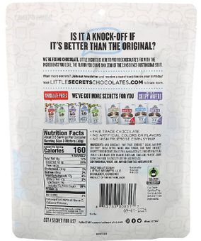 Ingredients: Milk Chocolate (Fair Trade Certified™ Sugar, Fair Trade Certified™ Cocoa Butter, Whole Milk Powder, Fair Trade Certified™ Unsweetened Chocolate, Soy Lecithin, Vanilla Extract), Enriched Wheat Flour (Wheat Flour, Niacin, Iron, Thiamine, Riboflavin, Folic Acid), Palm Oil*, Sugar, Sugar Cane Fiber, Sea Salt, Soy Lecithin, Ascorbic Acid.