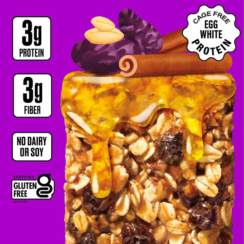 Ingredients: Organic Gluten-Free Oats, Almonds, Honey, Almond Butter, Raisins, Tapioca Fiber, Cage-Free Egg Whites, Molasses, Vanilla Extract, Cinnamon, Sea Salt. Contains: Almonds, Eggs.
