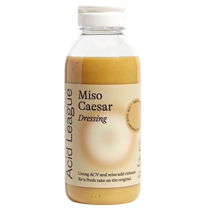 Acid League miso caesar dressing delivers a creamy, umami-rich twist on the classic, all without dairy.