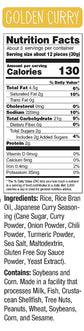 Ingredients: Rice, Rice Bran Oil, Cane Sugar, Curry Powder, Onion Powder, Chili Powder, Turmeric Powder, Sea Salt, Maltodextrin, Gluten Free Soy Sauce Powder, Yeast Extract.