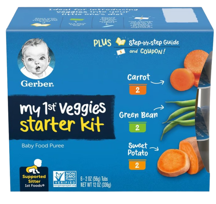 The Gerber My 1st Veggies Starter Kit offers a perfect introduction to solid foods with classic flavors like carrot, green bean, and sweet potato.