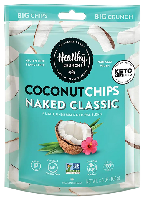 Our Healthy Crunch Coconut Chips are made with coconut and seasoned with various dressings all made with whole foods.