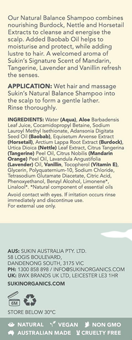 Ingredients: Water (Aqua), Aloe Barbadensis Leaf Juice, Cocamidopropyl Betaine, Sodium Lauroyl Methyl Isethionate, Adansonia Digitata Seed Oil (Baobab), Equisetum Arvense Extract (Horsetail), Arctium Lappa Root Extract (Burdock), Urtica Dioica (Nettle) Leaf Extract, Citrus Tangerina (Tangerine) Peel Oil, Citrus Nobilis (Mandarin Orange) Peel Oil, Lavandula Angustifolia (Lavender) Oil, Vanillin, Tocopherol (Vitamin E), Glycerin, Polyquaternium-10, Sodium Chloride, Tetrasodium Glutamate Diacetate, Citric Acid, Phenoxyethanol, Benzyl Alcohol, Limonene*, Linalool*.