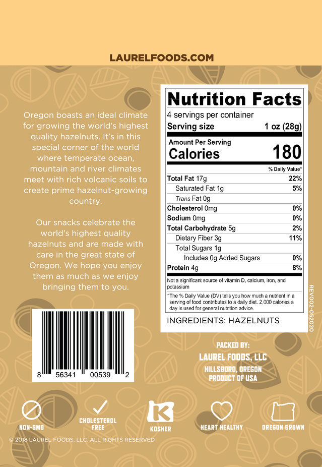 Laurel Foods Natural Oregon Hazelnuts are a premium, wholesome snack packed with rich, nutty flavor.