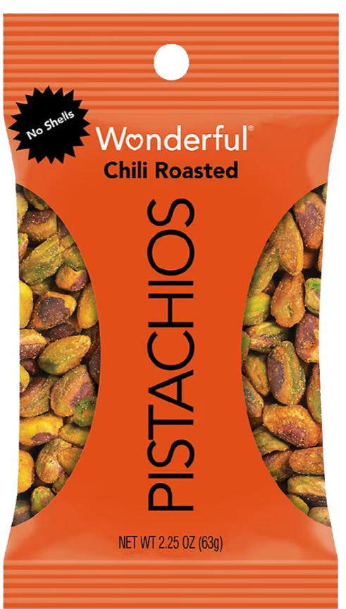 Ingredients: Pistachios, sunflower oil, salt, sugar, citric acid, malic acid, red tabasco pepper, garlic powder, yeast extract, vinegar, paprika, tumeric extracts, natural flavor