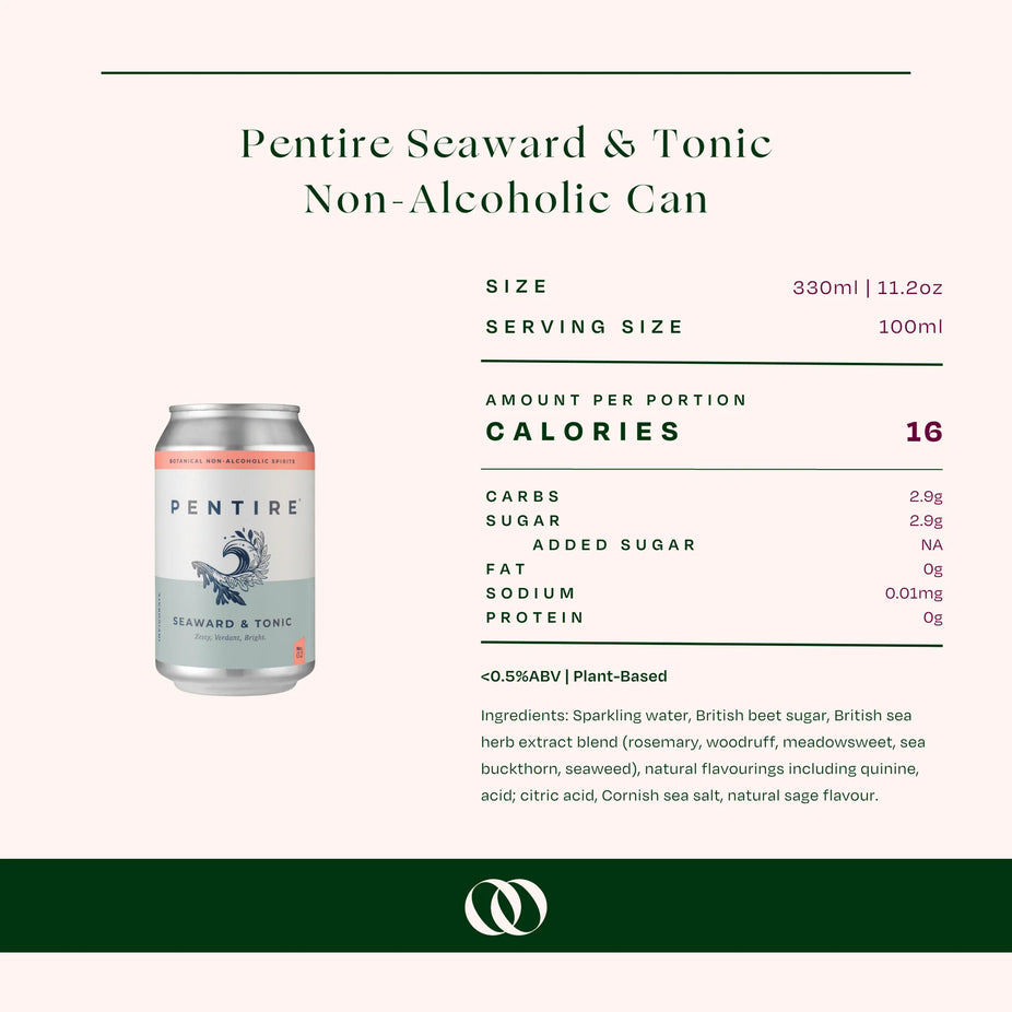 The Pentire Non-Alcoholic Aperitif Seaward & Tonic delivers the vibrant coastal flavors of Pentire’s Seaward spirit mixed perfectly with their house tonic, in a convenient ready-to-drink can.