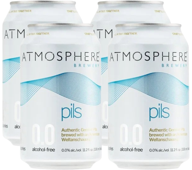 Atmosphere Brewery Non-Alcoholic Pilsner 0.0 ABV (4 Pack) delivers the classic taste of a German pilsner with a refreshing American twist.