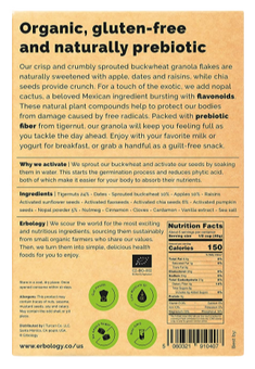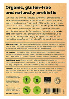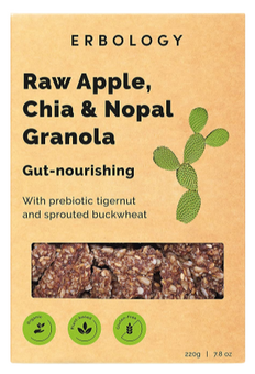 Ingredients: 24% Tigernuts, Dates, Sprouted Buckwheat, Apples, Raisins, Sunflower Seeds, 10% Chia Seeds, Linseeds, 10% Nopal Powder, Pumpkin Seeds, Nutmeg, Clove, Cinnamon, Cardamom, Vanilla Extract, Sea Salt.