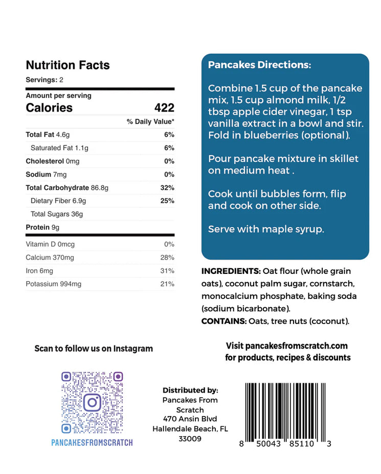 The Oat Flavor Pancake Mix is a vegan, gluten-free blend that creates fluffy, delicious pancakes or waffles in minutes.