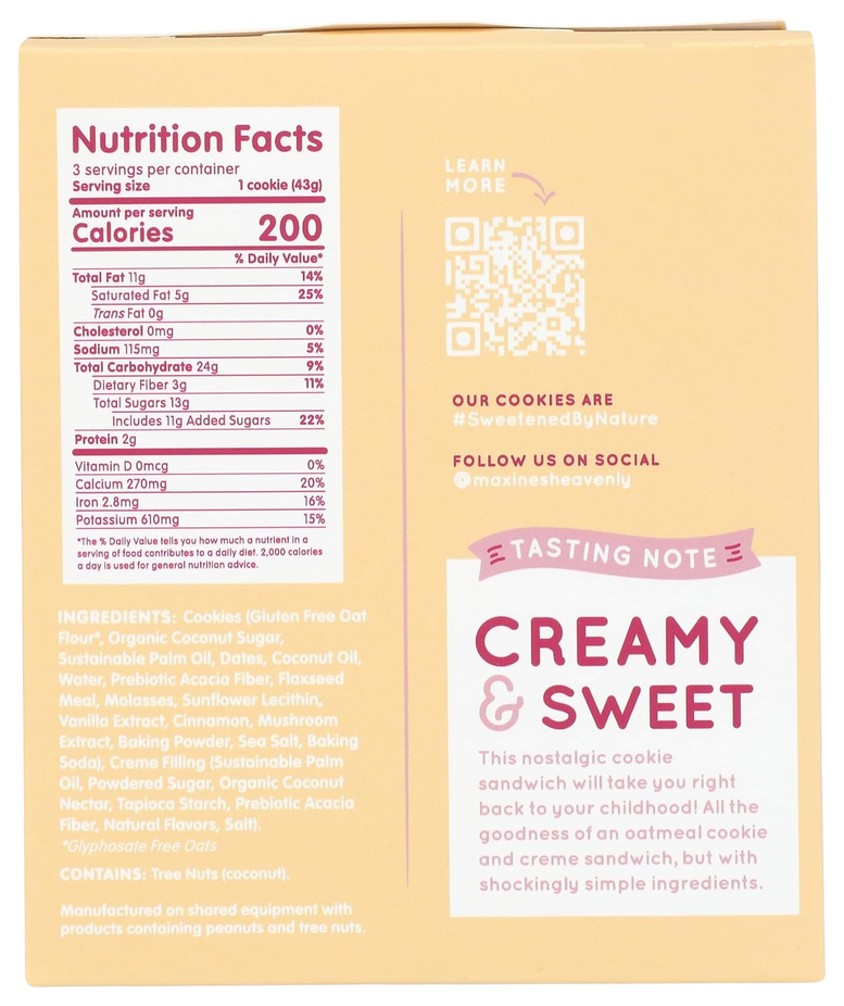 The Maxine's Heavenly Oatmeal Creme Sandwich delivers the perfect balance of soft oatmeal cookies and creamy filling without compromising on quality.