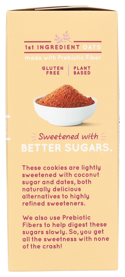 Ingredients: Cookies (Gluten Free Oat Flour, Organic Coconut Sugar, Sustainable Palm Oil, Dates, Coconut Oil, Water, Prebiotic Acacia Fiber, Flaxseed Meal, Molasses, Sunflower Lecithin, Vanilla Extract, Cinnamon, Mushroom Extract, Baking Powder, Sea Salt, Baking Soda), Creme Filling (Sustainable Palm Oil, Powdered Sugar, Organic Coconut Nectar, Tapioca Starch, Prebiotic Acacia Fiber, Natural Flavors, Salt).