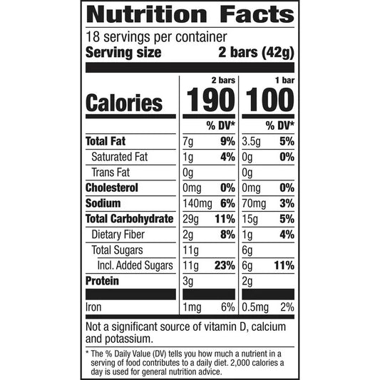 Ingredients: Whole Grain Oats, Sugar, Canola Oil, Rice Flour, Honey, Salt, Brown Sugar Syrup, Baking Soda, Soy Lecithin, Natural Flavor.