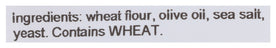 Ingredients: Wheat Flour, Olive Oil, Sea Salt, Yeast.