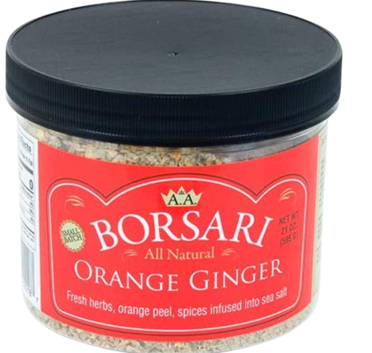 Ingredients: Sea Salt, Kosher Salt, Fresh Garlic, Fresh Basil, Fresh Rosemary, Black Pepper, Nutmeg, Fresh Orange Peel, Ginger (No Preservatives, MSG, Gluten or Dehydrated Ingredients).