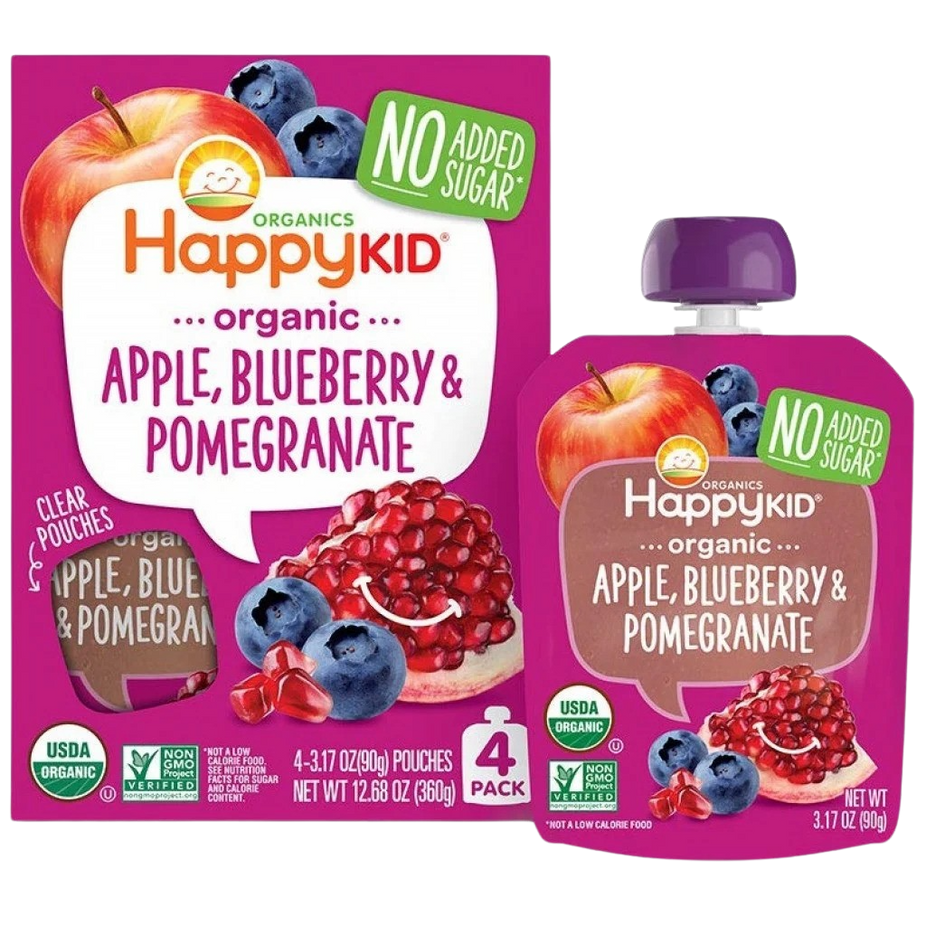 Ingredients: Organic Apple Puree, Organic Blueberry Puree, Organic Pomegranate Juice (From Concentrate), <1% Of: Organic Lemon Juice Concentrate, Ascorbic Acid (Vitamin C) To Preserve Freshness.