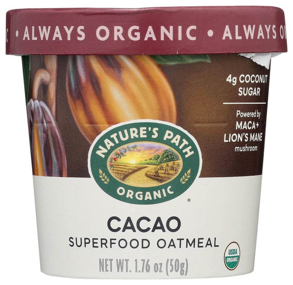 Ingredients: Whole Grain Steel Cut Oats, Whole Grain Rolled Oats, Coconut Sugar Chia Seeds, Fair Trade Cacao Powder, Dried Coconut, Fair Trade Cacao Nibs, Lion's Mane Mushroom Extract Powder, Medium Chain Triglycerides Oil Powder (Medium Chain Triglyceride Powder [Coconut], Acacia Fiber, Tapioca Maltodextrin), Sea Salt.