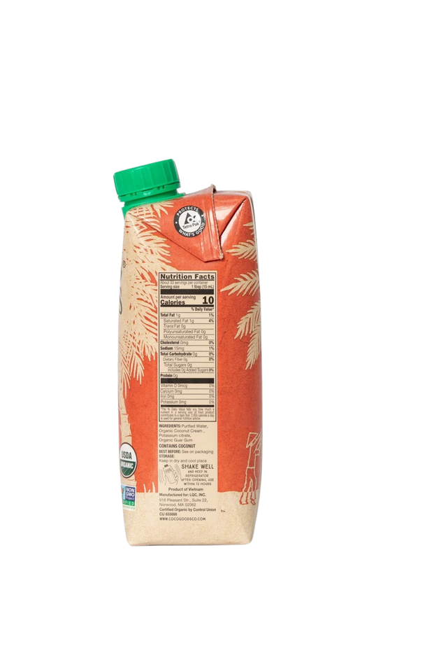 Ingredients: Purified Water, Organic Coconut Cream, Potassium Citrate, Organic Guar Gum