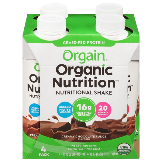 Ingredients: Filtered Water, Orgain Organic Protein Blend™ (Grass-Fed Organic Milk Protein Concentrate, Organic Whey Protein Concentrate), Organic Cane Sugar, Organic Brown Rice Syrup, Organic Rice Dextrin, Organic High Oleic Sunflower Oil, Organic Alkalized Cocoa, Organic Natural Flavors, Organic Sunflower Lecithin, Orgain Vitamin & Minerals Blend™ (Sodium Ascorbate, Magnesium Sulfate, Zinc Gluconate, Dl-Alpha Tocopheryl Acetate, Niacinamide, Vitamin A Palmitate, Potassium Iodide, Copper Gluconate, Biotin, Calcium D-Pantothenate, Cyanocobalamin, Cholecalciferol, Folic Acid, Thiamin Hydrochloride, Pyridoxine Hydrochloride, Riboflavin), Trisodium Phosphate, Potassium Chloride, Tricalcium Phosphate, Tripotassium Citrate, Gellan Gum, Sea Salt, Organic Inulin, Organic Locust Bean Gum, Orgain Organic Fruit & Vegetable Blend™ (Organic Apple Fiber, Organic Acai, Organic Beet, Organic Kale, Organic Raspberry, Organic Spinach, Organic Tomato, Organic Banana, Organic Blueberry, Organic Carrot), Natural Flavor.