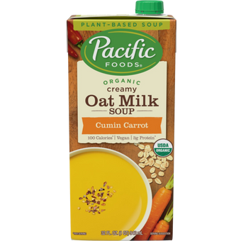 Pacific Foods Organic Creamy Cumin Carrot Oat Milk Soup blends sweet carrots, smooth oat milk, and smoky cumin for a rich, plant-based bowl of comfort.