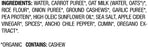 Ingredients: Water, Carrot Puree*, Oat Milk (Water, Oats*)*, Rice Flour*, Onion Puree*, Ground Cashews*, Garlic Puree*, Pea Protein*, High Oleic Sunflower Oil*, Sea Salt, Apple Cider Vinegar*, Spices*, Ancho Chile Pepper*, Cumin*, Oregano Extract*.