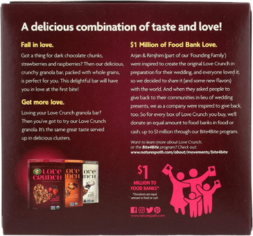 Ingredients: Whole Grain Rolled Oats*, Cane Sugar*, Sunflower Oil*, Fair Trade Dark Chocolate Chunks* (Cane Sugar*, Unsweetened Chocolate*, Cocoa Butter*, Vanilla*), Dark Cocoa Coating* [Cane Sugar*, Palm Kernel Oil*, Fair Trade Cocoa Powder* (Processed With Alkali), Soy Lecithin*, Vanilla* (Milk)], Invert Cane Syrup*, Dried Coconut*, Honey*, Fair Trade Cocoa Powder*, Freeze Dried Berry Blend* (Freeze Dried Strawberries*, Freeze Dried Raspberries*), Chocolate Flavor*, Freeze Dried Strawberry Pieces*, Oat Fiber*, Oat Syrup Solids* [Oat Syrup Solids*, Tocopherols (Vitamin E)], Sea Salt, Vanilla Flavor*, Tocopherols (Vitamin E).