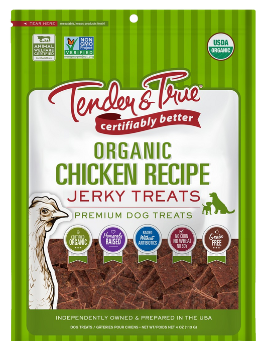 Ingredients: Organic Chicken, Organic Pea Flour, Organic Molasses, Non-Gmo Coconut Glycerin, Salt, Non-Gmo Natural Smoke Flavor, Organic Apple Cider Vinegar, Mixed Tocopherols (Preservative).