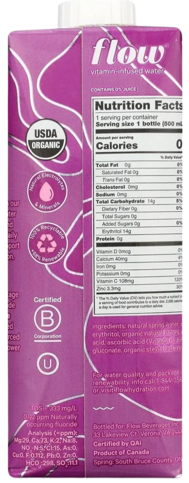 Flow Water Organic Elderberry Vitamin Infused Water
