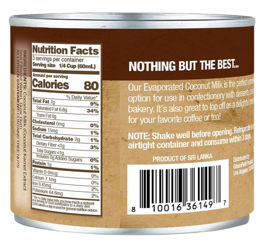 Ingredients: Coconut Milk (Coconut Kermel Extract and Filtered Water).