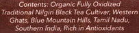 Ingredients: Organic Fully Oxidized Traditional Nilgiri Black Tea Clutivar, Western Ghats, Blue Mountain Hills, Tamil Nadu, Southern India, Rich In Antioxidants.