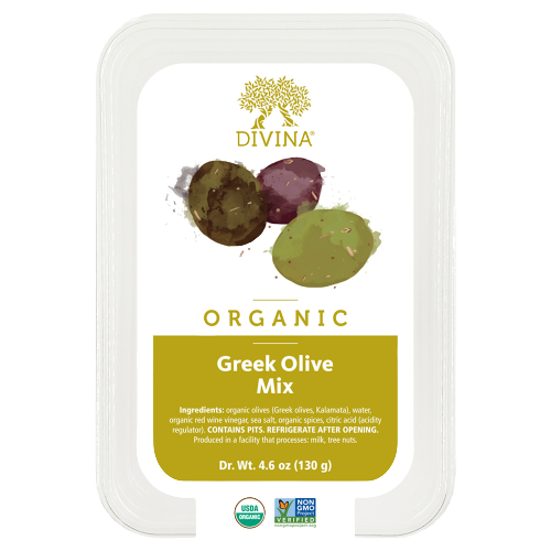 Ingredients: Organic Olives (Greek Olives, Kalamata), Water, Organic Red Wine Vinegar, Sea Salt, Organic Spices, Citric Acid (Acidity Regulator).