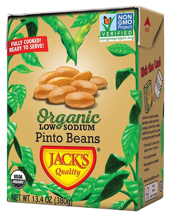 Jack's Quality Organic Low Sodium Pinto Beans offer a healthy and convenient addition to your pantry. These organic beans are high in protein, naturally low in sodium, and gluten free, making them a great choice for nutritious meals. Perfect for soups, salads, and side dishes, they provide wholesome, high-quality nutrition without compromising on flavor.
