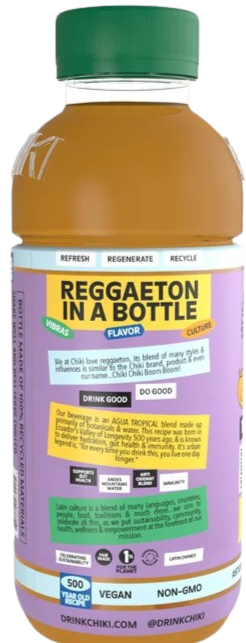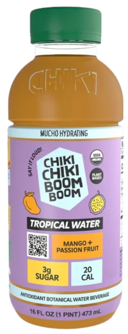 Ingredients: Purified Water, Chiki Antioxidant Organic Blend( Organic Lemon Verbena, Organic Lemongrass, Organic Malva Essence, Organic Mallow Flower, Organic Chamomile, Organic Lemon Balm, Organic Mint, Organic Rose Flowers), Mango Concentrate, Passion Fruit Concentrate, Natural Flavor, Organic Panela Sugar, Vegetable Juice for Color. Contains Less than 2% of: Ascorbic Acid, Citric Acid, Xanthan Gum , Sodium Citrate and Organic Rebaudioside.