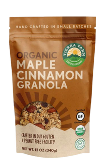 Ingredients: Organic Whole Rolled Oats, Organic Maple Syrup, Dry Roasted Organic Almonds, Organic Sesame Seeds, Organic Chia Seeds, Organic Flax Seeds, Organic Sunflower Seeds, Organic Virgin Coconut Oil, Dried Organic Coconut, Organic Raisins, Dry Roasted Organic Cashew Pieces, Dry Roasted Organic Walnuts, Sea Salt, Organic Wheat Free Tamari Soy Sauce (Water, Organic Soybeans, Salt, Organic Alcohol [to preserve freshness]), Organic Cinnamon.