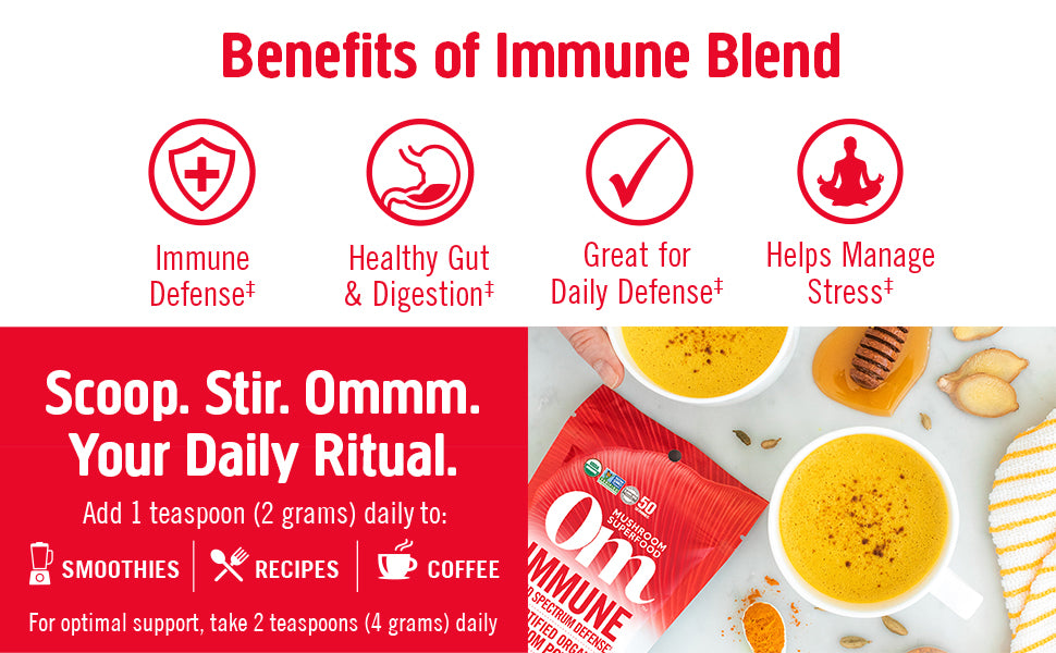 The Organic Mushroom Nutrition Supplement Powder - Immune is a thoughtfully crafted blend designed to support and strengthen your body’s natural defenses.