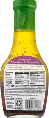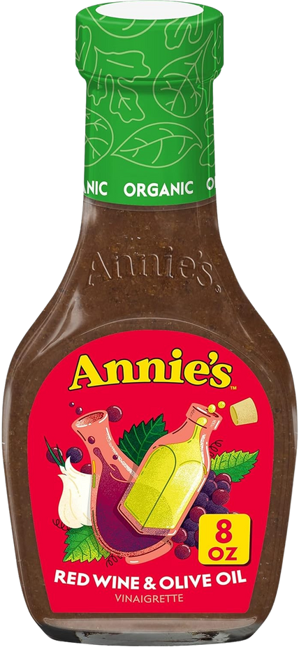 Annie's Organic Red Wine & Olive Oil Vinaigrette is a delightful addition to any salad, offering a perfect balance of tangy and savory flavors.