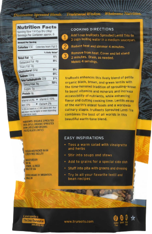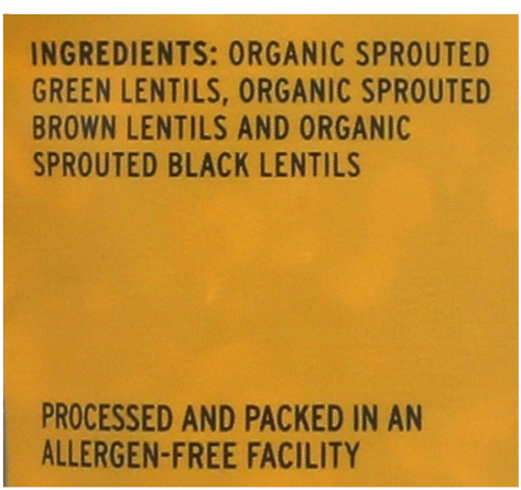 Ingredients: Organic Sprouted Green Lentils, Organic Sprouted Brown Lentils And Organic Sprouted Black Lentils