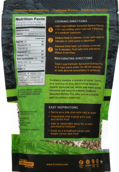 Ingredients: Organic Sprouted White Quinoa, Organic Sprouted Red Quinoa, Organic Sprouted Black Quinoa