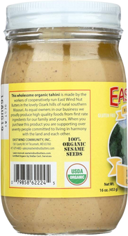 East Wind Organic Tahini - Roasted, No Salt is a pure, creamy tahini made with just one ingredient for a rich, versatile addition to your kitchen.