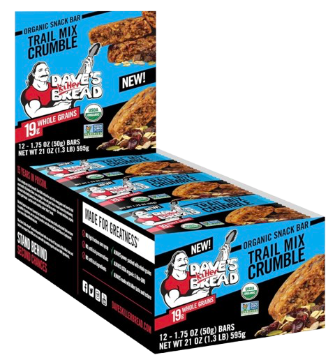 The Dave’s Killer Bread Organic Trail Mix Crumble Bar combines organic chocolate, fruit, and seeds for a crave-worthy snack that’s packed with whole grain goodness and on-the-go energy.