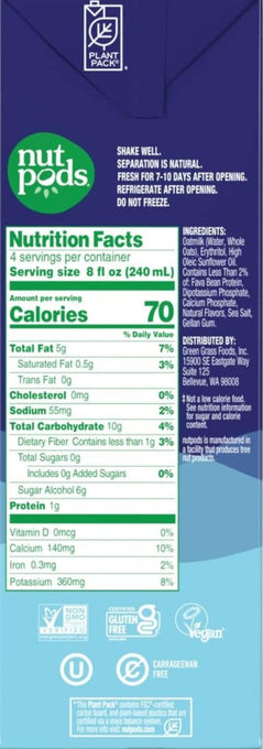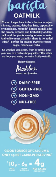 Nutpods Original Barista Oatmilk is a creamy, versatile oat milk designed to froth beautifully in lattes, cappuccinos, and more.