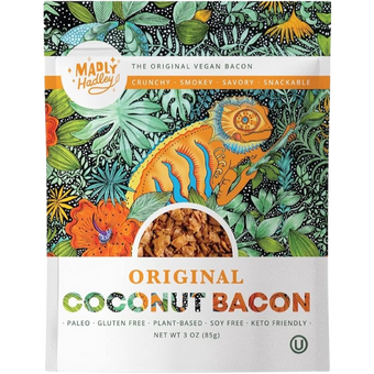 Madley Hadley Original Coconut Bacon is a delicious vegan snack that delivers a savory, smoky flavor with every bite, perfect for topping or munching on its own.