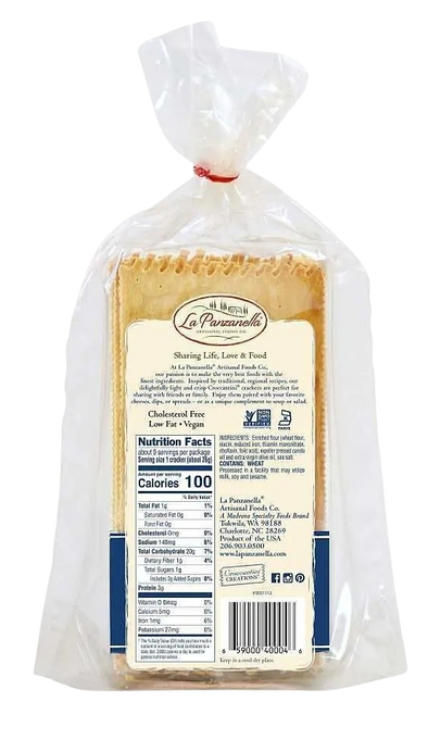La Panzanella Original Croccantini are crisp, golden crackers with a delicate touch of sea salt, perfect for pairing with your favorite cheeses and spreads.