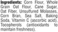 Ingredients: Non-Gmo Corn Flour, Non-Gmo Corn Bran, Evaporated Cane Sugar, Whole Oat Flour, Unsulfured Molasses, Expeller Pressed High Oleic Oil (Canola And/Or Sunflower), Sea Salt, Baking Soda, Caramel Color (From Cane Molasses), Vitamin C (Ascorbic Acid), Tocopherols (Antioxidants To Preserve Freshness).