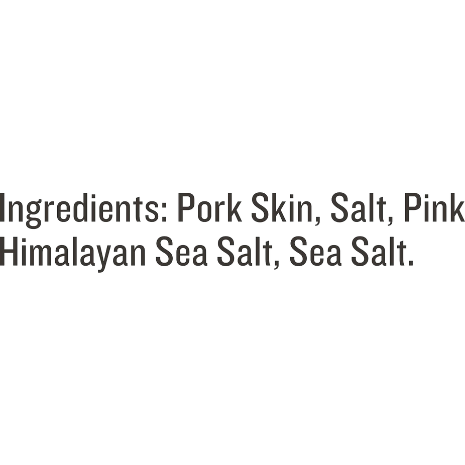 Ingredients: Pork Skin, Salt, Pink Himalayan Sea Salt, Sea Salt.