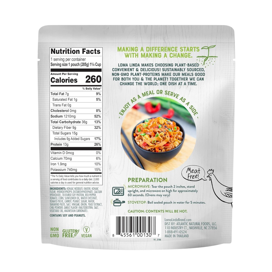 The Loma Linda Pad Thai brings the authentic taste of Thai cuisine to your table in a quick and ready-to-eat format.