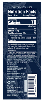 Ingredients: Filtered Water, Organic Cane Sugar, Organic Peach Puree, Organic Brewed Black Tea, Natural Flavors, Organic Lemon Juice Concentrate