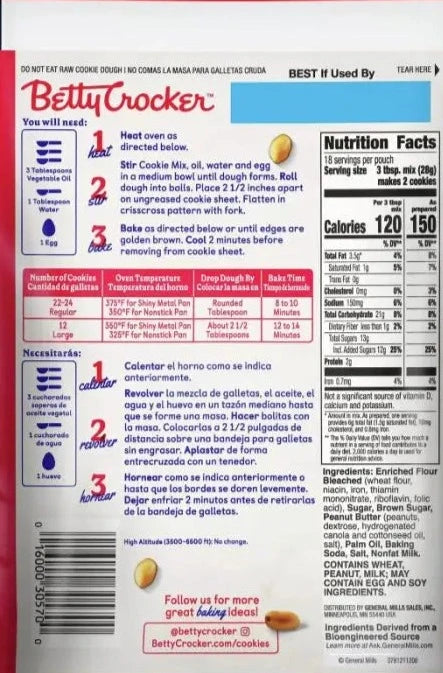 Ingredients: Enriched Flour Bleached (wheat flour, niacin, iron, thiamin mononitrate, riboflavin, folic acid), Sugar, Brown Sugar, Peanut Butter (peanuts, dextrose, hydrogenated canola and cottonseed oil, salt), Palm Oil, Corn Syrup, Whey, Baking Soda, Salt.