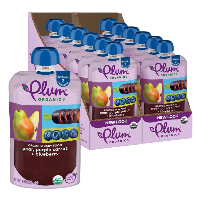 Plum Organics is dedicated to nourishing little ones with high-quality, organic baby food made from real, wholesome ingredients. Pear, Purple Carrot & Blueberry Stage 2 Baby Food (12 Pack) introduces babies 6 months and older to vibrant flavors and essential nutrients in a convenient, easy-to-use pouch.