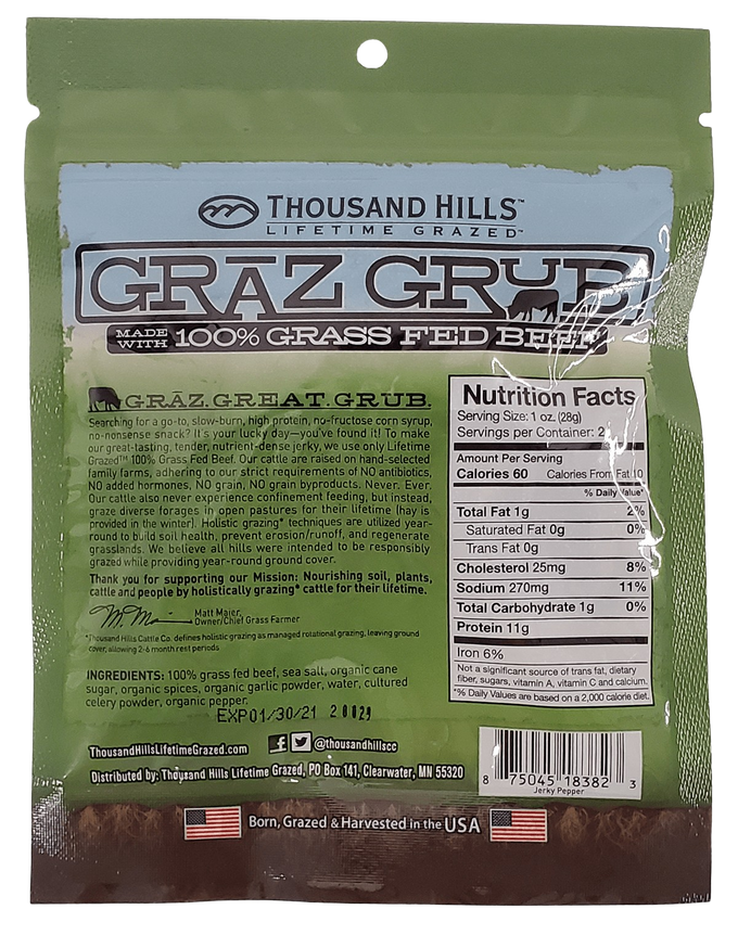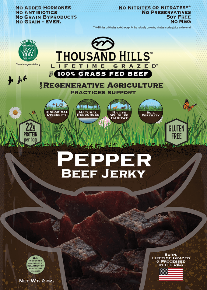 Ingredients: 100% Grass Fed Regenerative Beef, sea salt, organic cane sugar, organic spices, organic garlic powder, water, cultured celery powder.